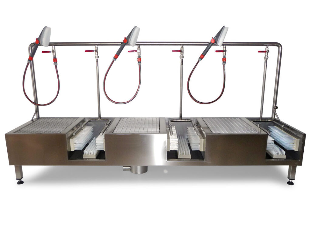 Thiết bị hoàn toàn là thủ công, người thao tác tự cọ rửa nhờ các tấm bàn chải và nước.