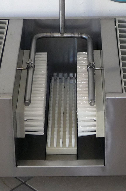 Inhytek, innovation and forward thinking are in our DNA. This means that our products are designed down to the details and contribute to a food-safe production environment. By choosing a sole cleaning and hand disinfection machine, you’re choosing an innovative product. For example, the rotating brushes of the sole cleaner are wetted and activated fully automatically. What’s more, the brushes can be easily removed without any tools, so you don’t need to hunt around for spanners.